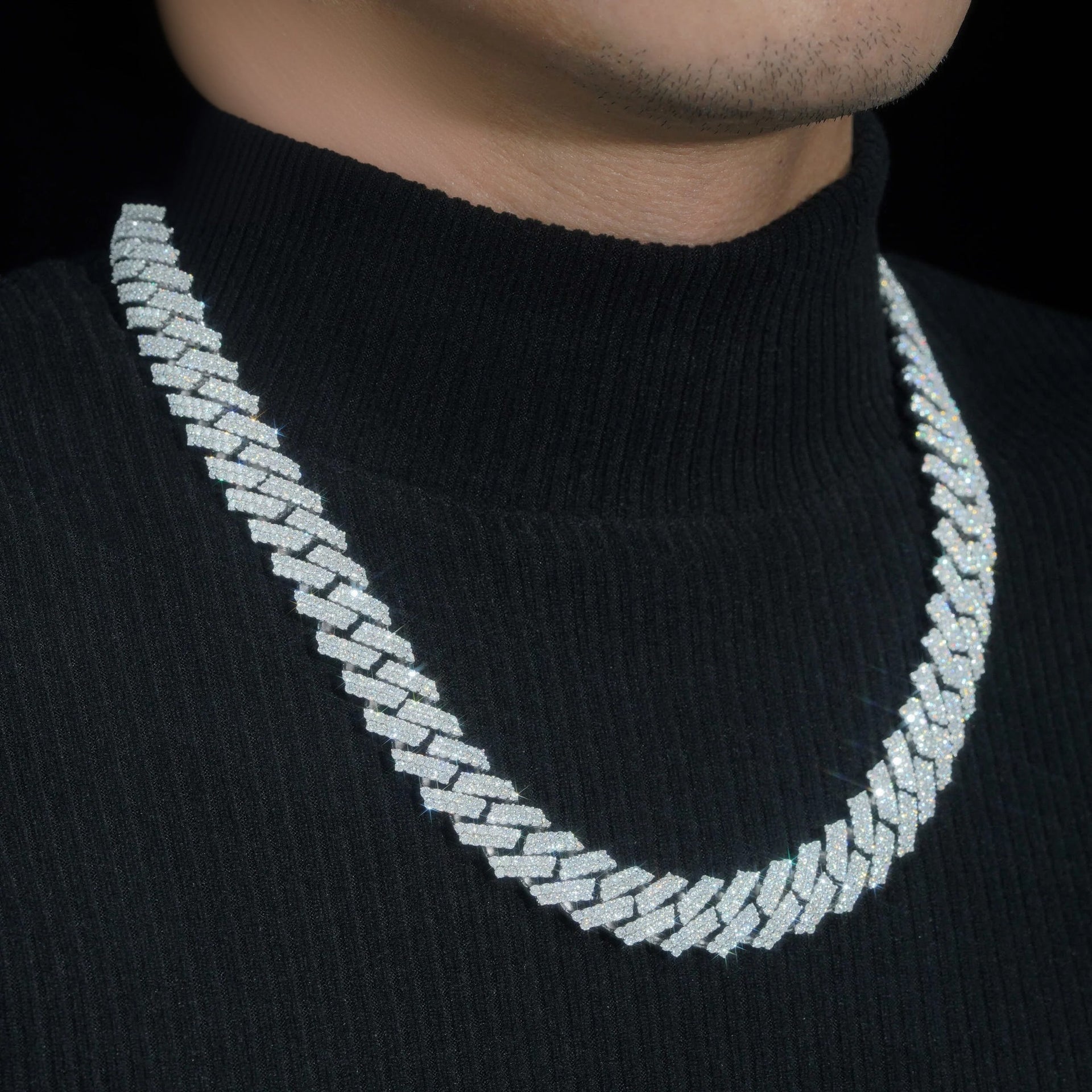 Elevate your style with this luxurious Fine Jewelry 18mm Cuban Link Chain. Made with heavy 925 silver and sparkling moissanite diamonds, this hip hop chain adds a touch of elegance and shine to any outfit. Upgrade your accessory game with this must-have piece.