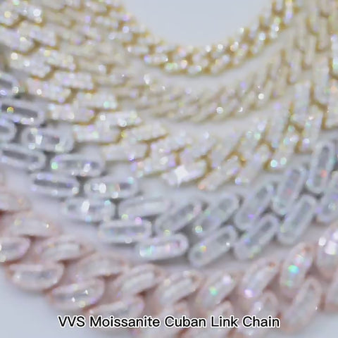 Pass Diamond Tester Rapper Jewelry Iced Out Baguette 18MM 925 Silver Hip Hop Moissanite Cuban Link Chain